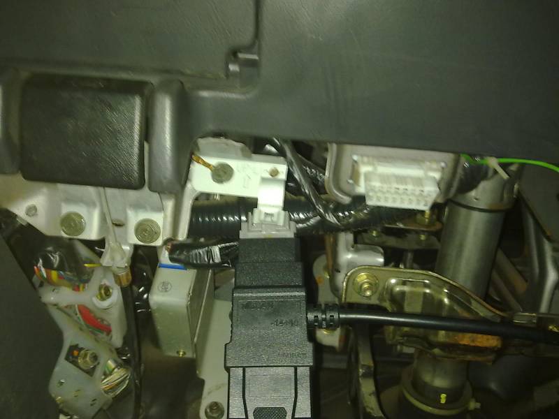 Mazda 323F - temal kaks pistikut: 16 pin OBD ja Mazda 17. Viimane on suhtlusaldim.