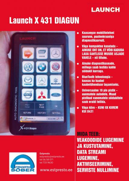 ühenduskaabel 16 pin pistiku ka diagnostikaseadme vahel. Juhuks kui BlueTooth peaks keelduma töötamast.